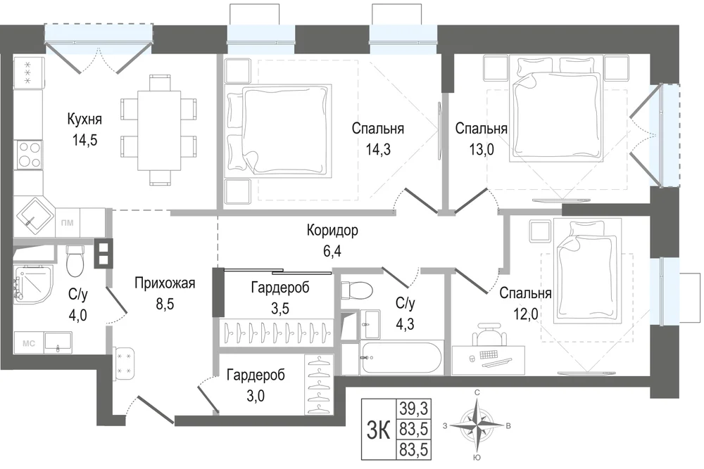 3-комнатная