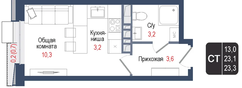 Студия  26.2 м2