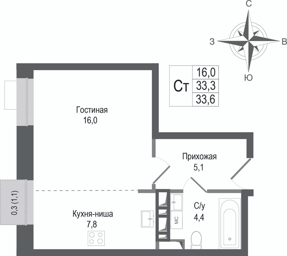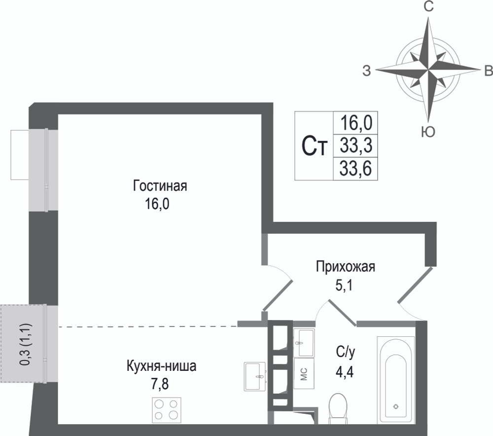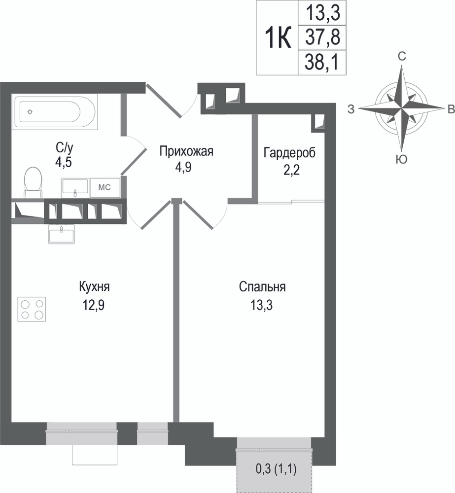 1-комнатная 37.2 м2