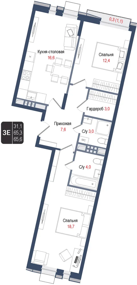 3-комнатная