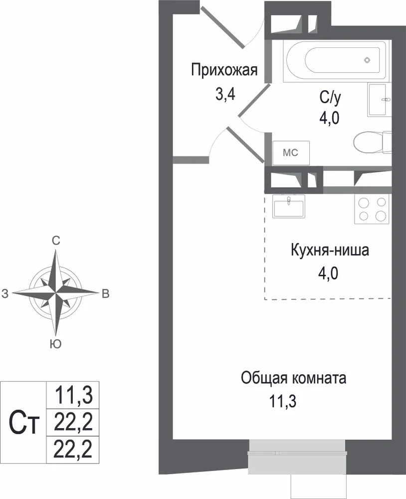 Студия  24.2 м2