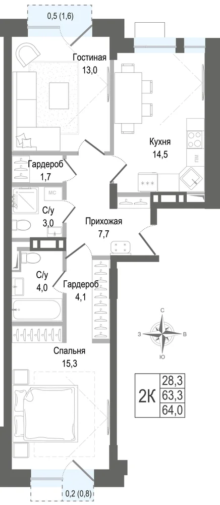67.2 м2